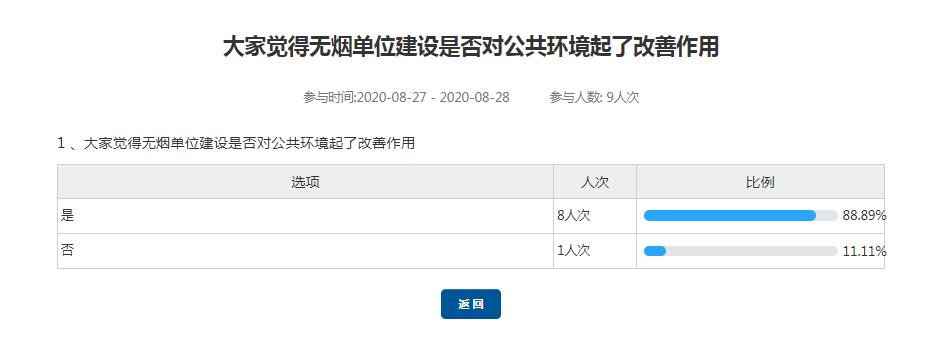1、大家觉得无烟单位建设是否对公共环境起了改善作用