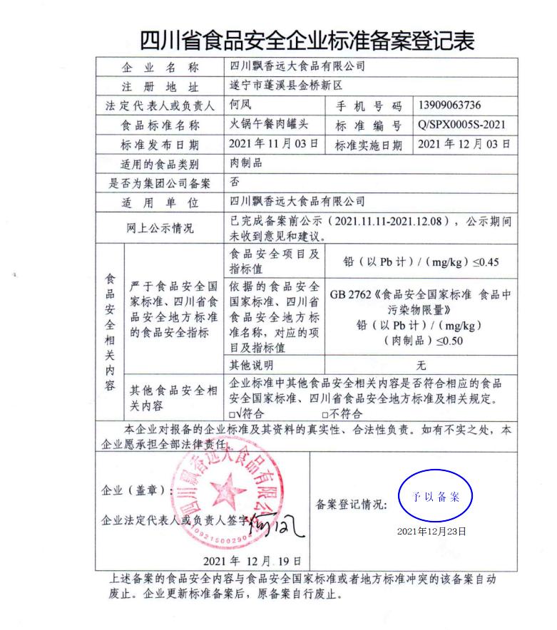 四川飘香远大食品有限公司-火锅午餐肉罐头