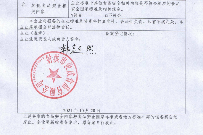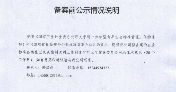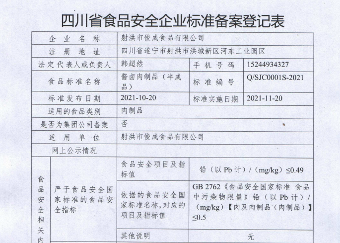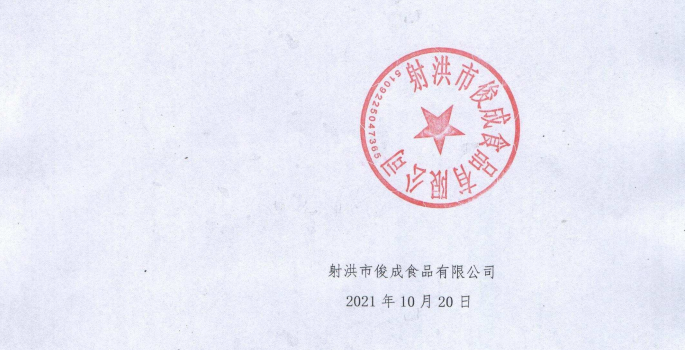射洪市俊成食品有限公司——酱卤肉制品(半成品)食品备案公示(公示截止期2021.11.18)