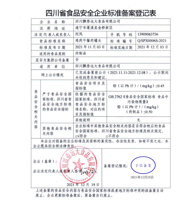 四川飘香远大食品有限公司-鸡肉午餐肉罐头