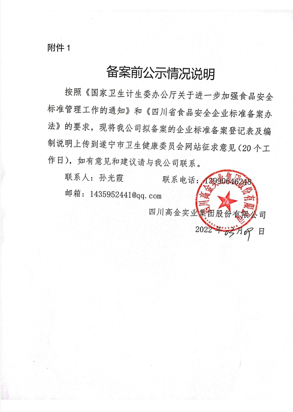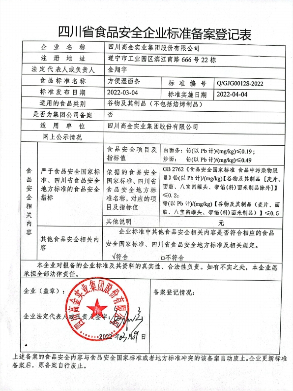 四川高金实业集团股份有限公司——方便湿面条(公示截止期2022年4月7日)