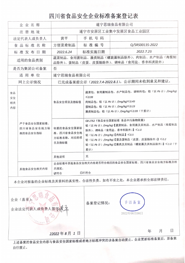 遂宁思瑞食品有限公司—— 方便菜肴制品