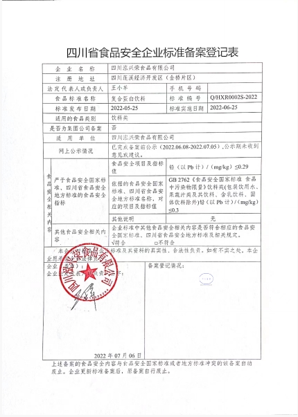 四川泓兴荣食品有限公司——复合蛋白饮料