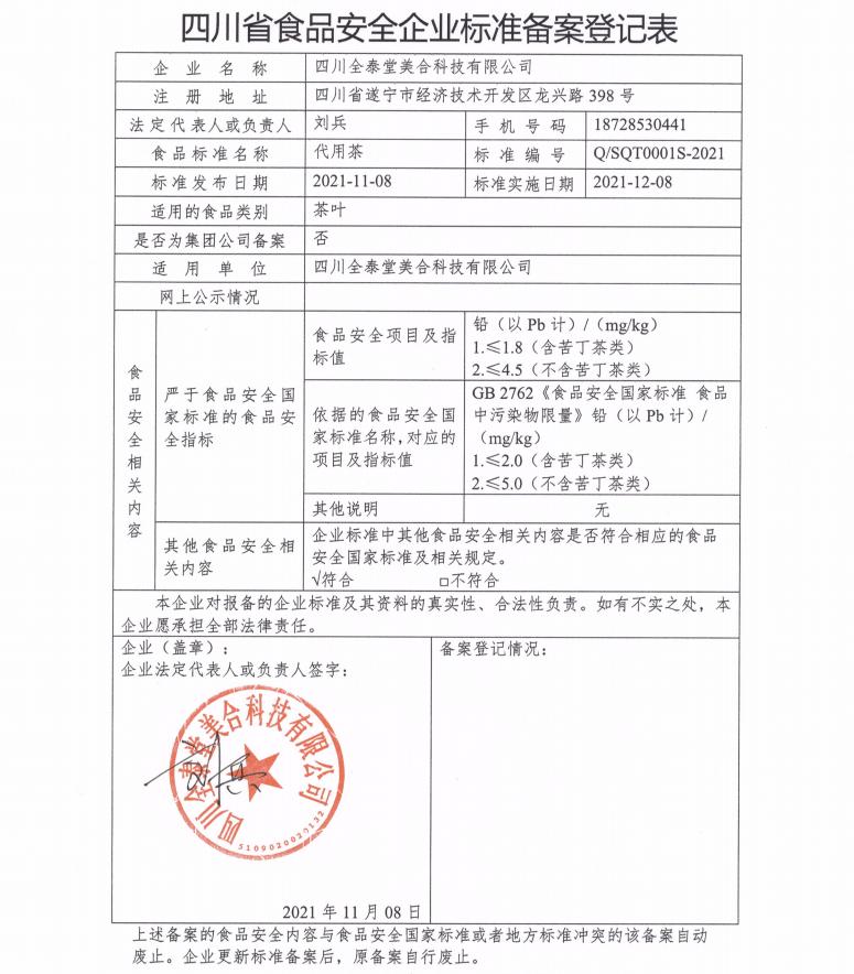 四川全泰堂美合科技有限公司——代用茶(公示截止期2021年12月9日)