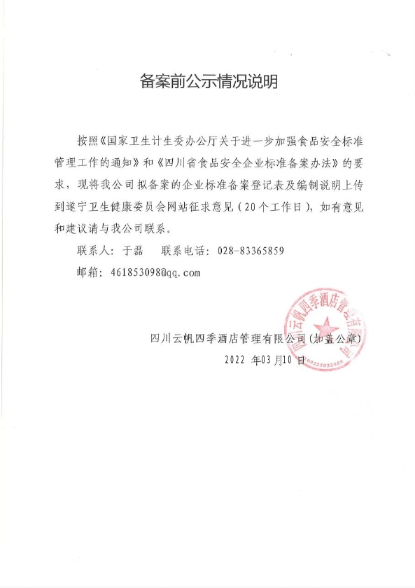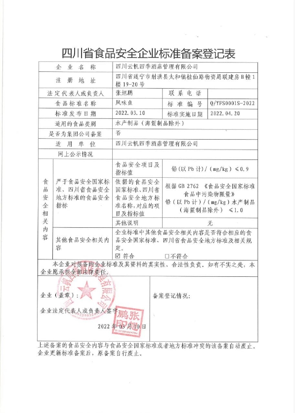 四川云帆四季酒店管理有限公司——风味鱼(公示截止期2022年4月8日)