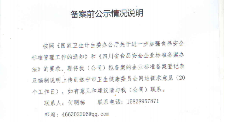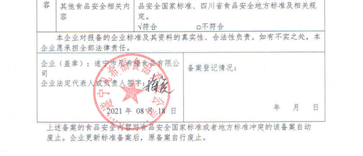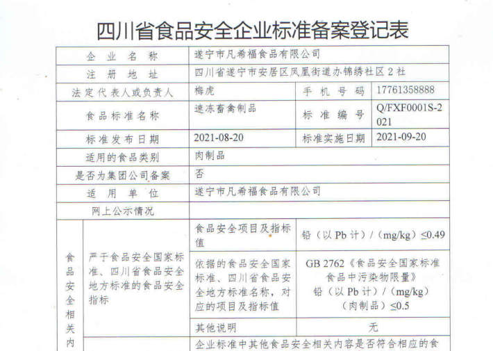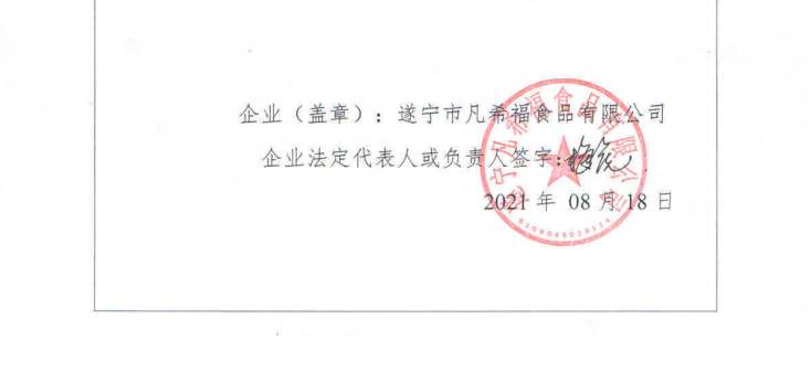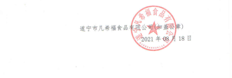 遂宁市凡希福食品有限公司食品备案公示(公示截止期2021.9.15)