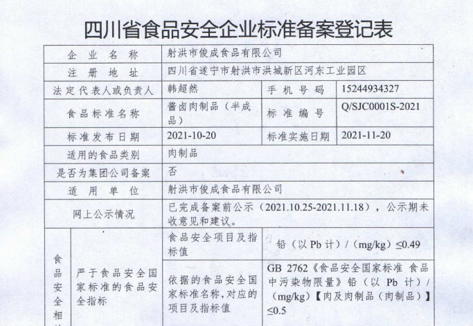 射洪市俊成食品有限公司——酱卤肉制品(半成品)