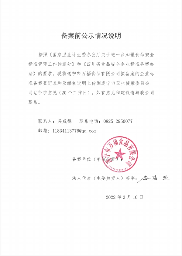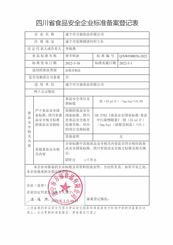 遂宁市万福食品有限公司——香辛料油(公示截止期2022年4月8日)