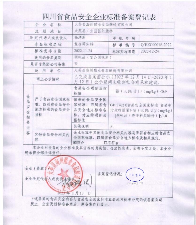 大英县海州醋业食品酿造有限公司——复合调味料