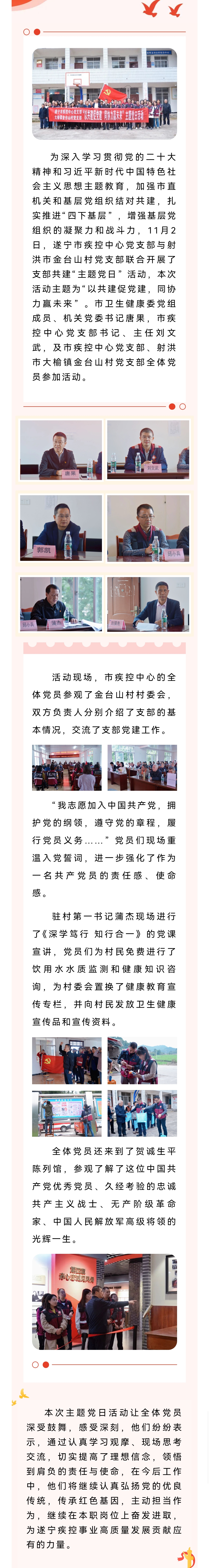 以共建促党建 同协力赢未来——遂宁市疾控中心党支部联合射洪市金台山村党支部开展支部共建“主题党日”活动