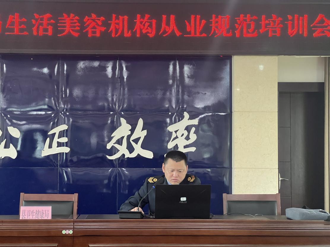 为进一步提高生活美容机构从业人员法律意识,规范化妆品市场秩序,促进企业守法诚信规范经营,2023年4月7日,县卫生健康局联合县市场监管局组织开展美容机构法律法规及相关知识培训会议,辖区内美容机构负责人共40余人参加培训。