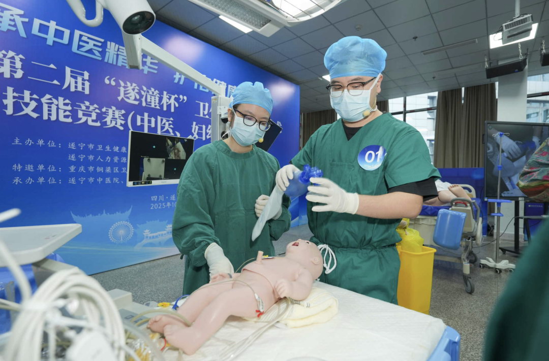 此次比赛以“传承中医精华护佑健康遂潼”为主题,由遂宁市卫生健康委员会、遂宁市总工会、重庆市潼南区卫生健康委员会等6个部门联合主办,遂宁市中医院、遂宁市妇幼保健计划生育服务中心联合承办。旨在搭建“切磋技艺、交流技术、提升技能、快速成才”的平台,助力遂潼地区高素质技能人才队伍建设,更好地推进遂潼卫生健康事业高质量一体化发展。比赛邀请四川大学华西第二医院、重庆医科大学附属第二医院、成都中医药大学附属医院等专家担任评委。