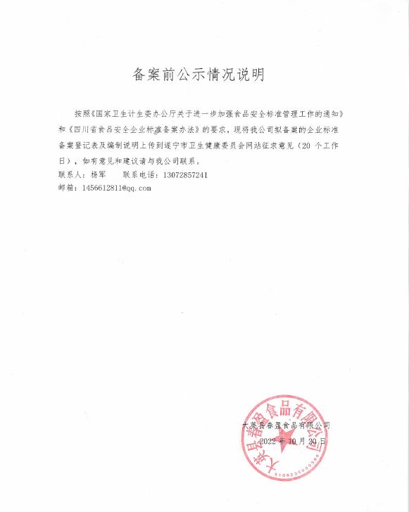 大英县春盈食品有限公司——食用调和油(公示截止期2022年11月23日)