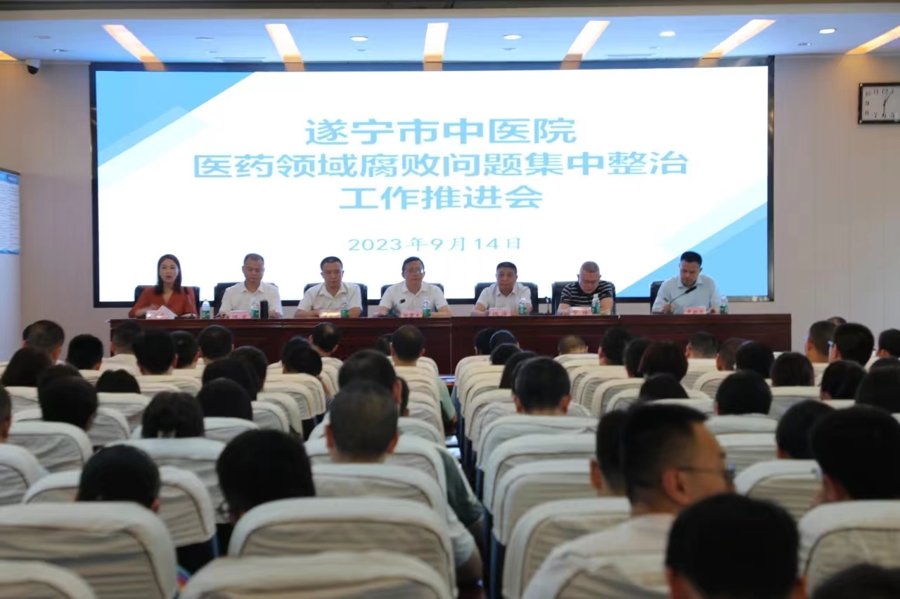 为深入贯彻习近平总书记关于医药领域腐败问题的重要指示批示精神,认真落实医药领域腐败问题集中整治的工作要求,全面深化清廉医院建设,9月14日下午,遂宁市中医院组织召开医药领域腐败问题集中整治工作推进会议。院领导班子成员、护士长及以上中层干部、专业组长、所有医生(值班除外)参加会议。党委书记杨国庆主持会议。