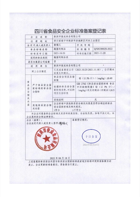 射洪市俊成食品有限公司——腌腊肉制品