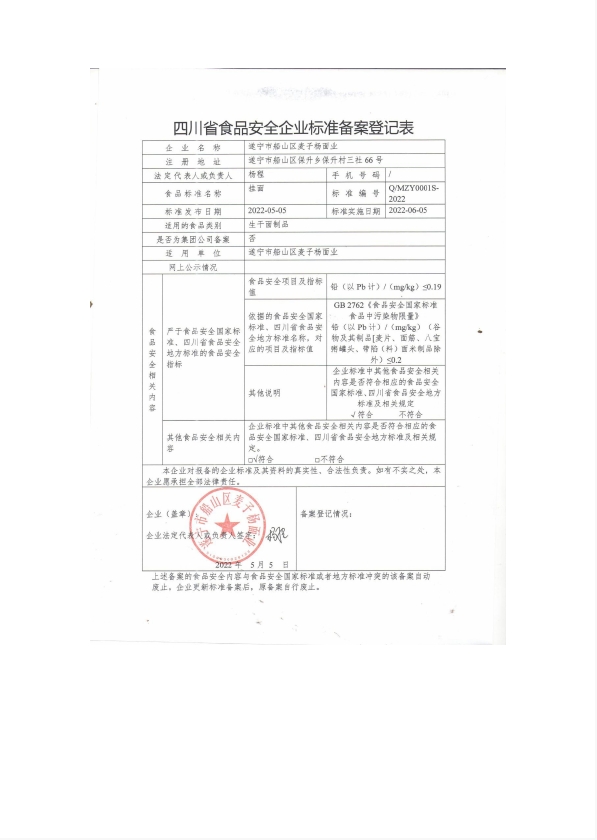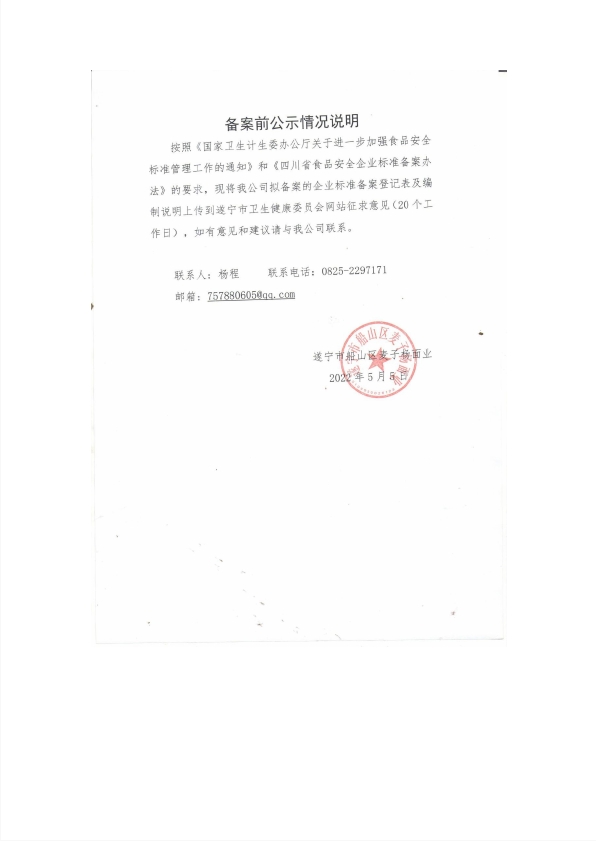 遂宁市船山区麦子杨面业——挂面(公示截止期2022年6月1日)