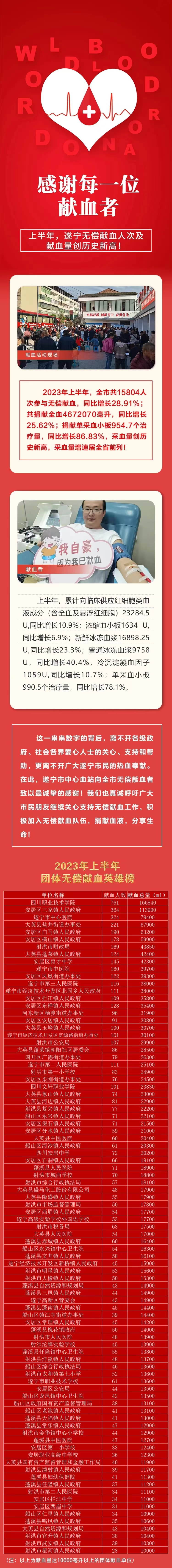 赞!今年上半年,遂宁无偿献血人次及献血量创历史新高
