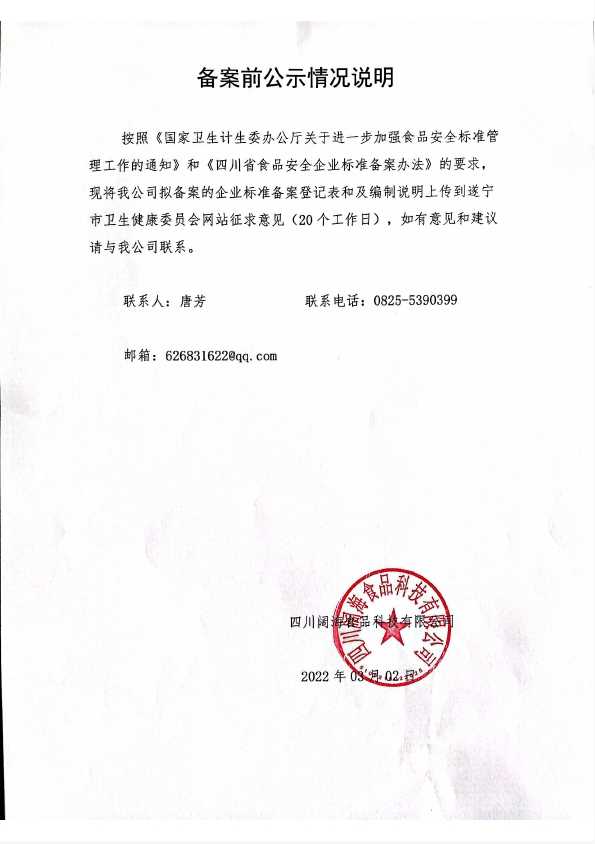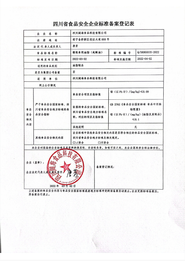四川阔海食品科技有限公司——精炼食用油脂(起酥油)(公示截止期2022年3月29日)