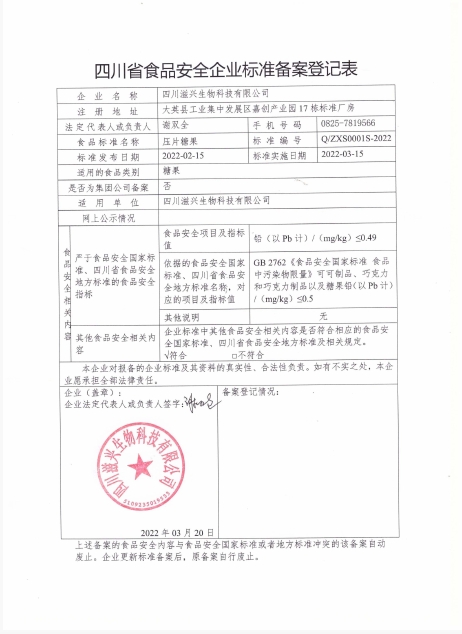 四川滋兴生物科技有限公司 —压片糖果(公示截止期2022年4月20日)