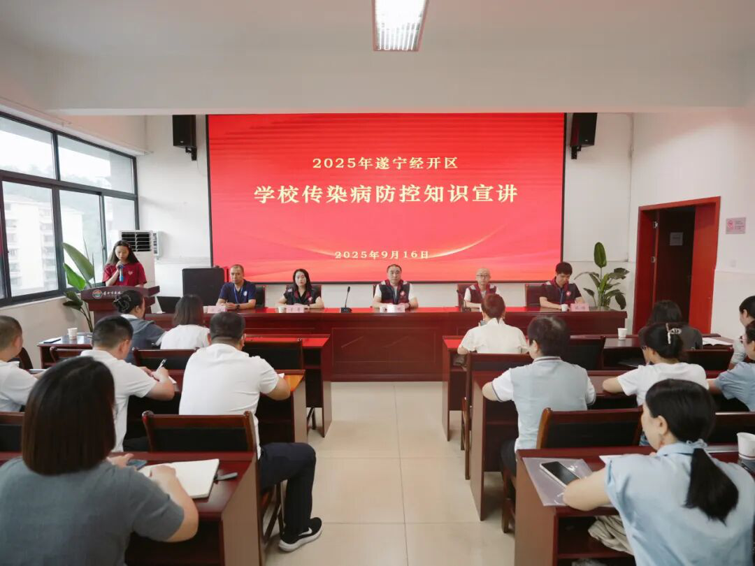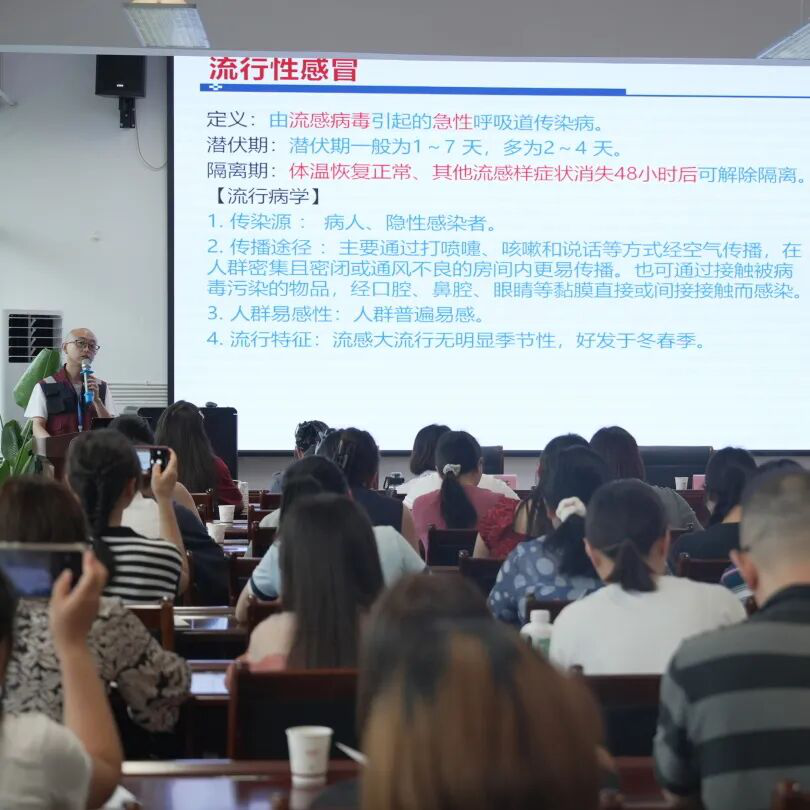 秋季气温起伏,流感、水痘、诺如等传染病进入活跃期,为全面提升市直园区学校传染病防控能力,9月16日,遂宁市疾病预防控制中心联合遂宁经开区和市河东新区社事局共同举办了秋季学校传染病防控知识宣讲,各学校(托幼机构)卫生管理工作分管领导、校医(卫生保健工作人员)、班主任代表、社区卫生服务中心骨干共计200余人参训,共筑校园健康屏障。