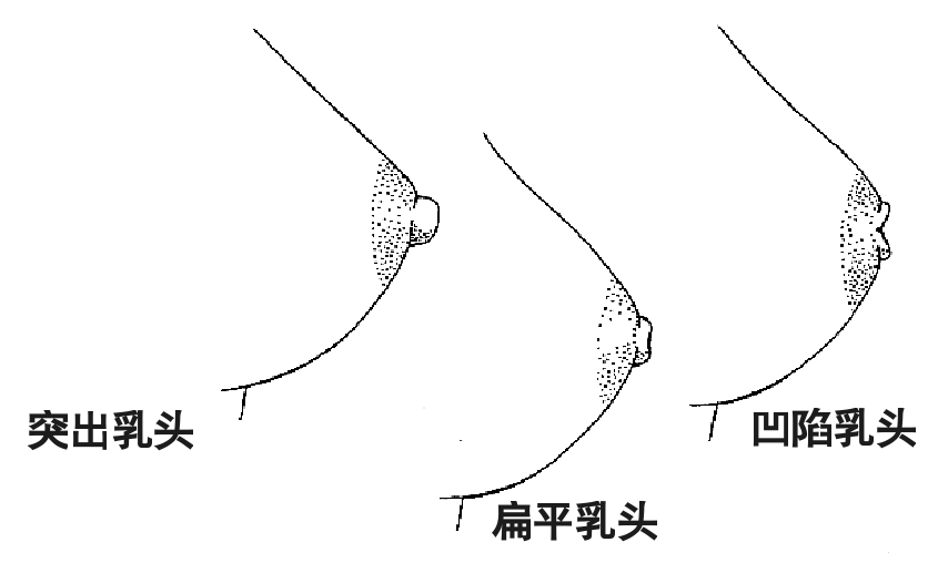 母亲在检查乳房伸展性时,如果发现乳头是凹陷的,可尝试用手牵拉将乳头牵出。若能牵出,为假性凹陷。对于这种情况,孕期不用特殊处理,只要喂哺前用手牵出乳头,即可帮助婴儿含接。