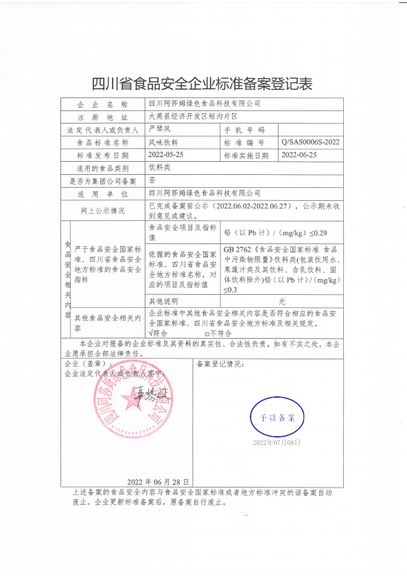 四川阿莎姆绿色食品科技有限公司——风味饮料