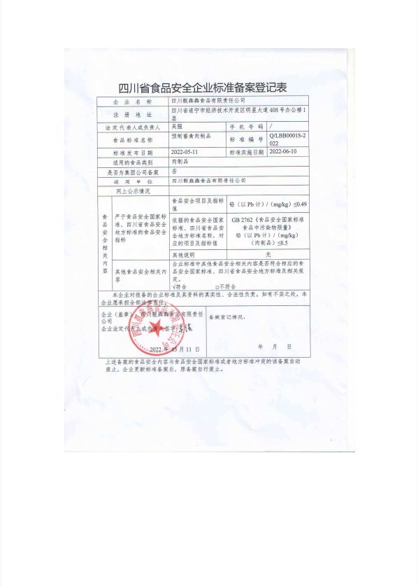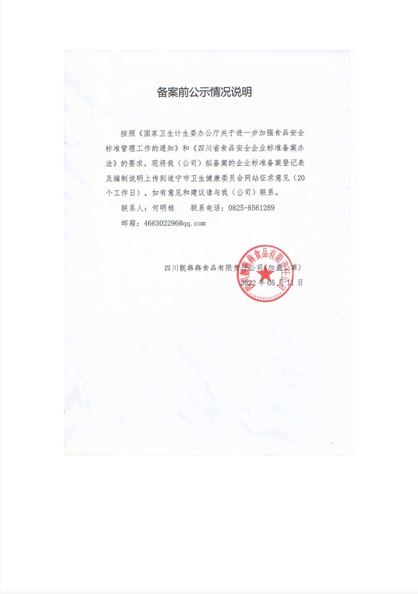 四川靓犇犇食品有限责任公司—预制畜禽肉制品(公示截止期2022年6月14日)