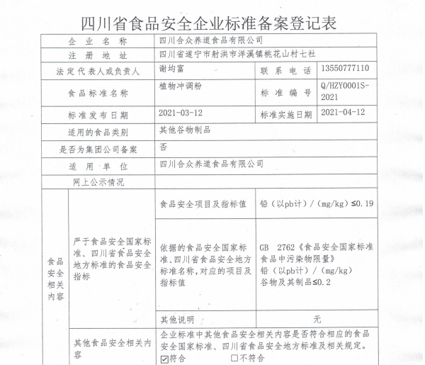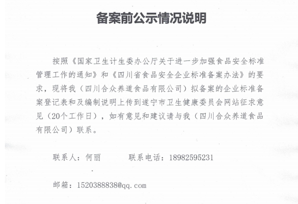 四川合众养道食品有限公司食品备案公示(公示截止期2021.04.12)