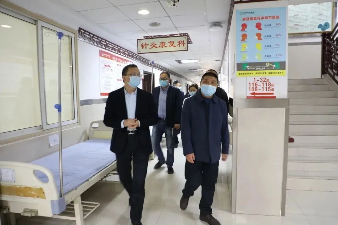 杨国庆一行先后来到和平路院区门诊大厅、制剂中心、病案室、放射科、学生宿舍等地,对和平路院区业务用房情况进行摸底。随后深入针灸康复科、老年病科、耳鼻喉科、眼科、皮肤科、肛肠科等科室住院部,详细查看病房环境及设施设备,了解科室人员情况、科研教学工作、业务发展情况等。对查房中发现的问题现场办公,商讨研究解决方案,明确责任科室和责任时限,以确保各项工作得到真正的落实。