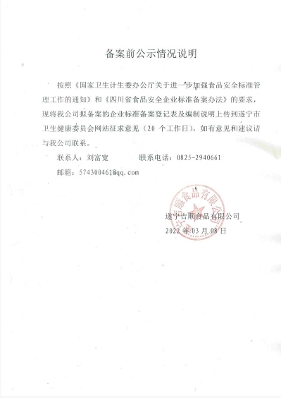 遂宁吉顺食品有限公司——油辣椒(公示截止期2022年4月11日)
