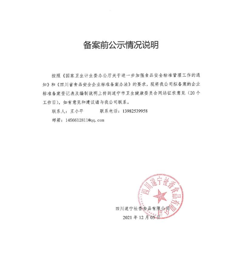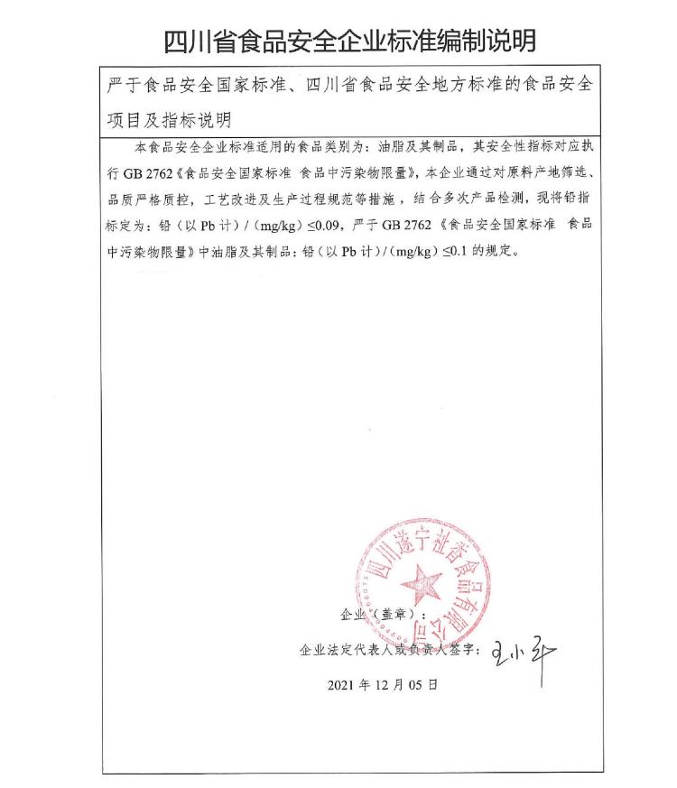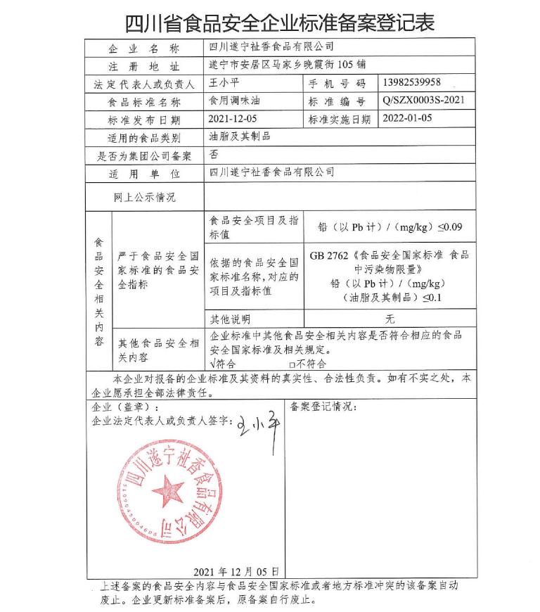 四川遂宁祉香食品有限公司——食用调味油(公示截止期2022年1月5日)