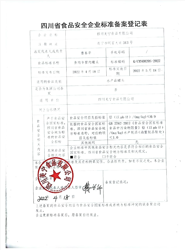 四川美宁食品有限公司——鱼肉午餐肉罐头(公示截止期2022年5月18日)