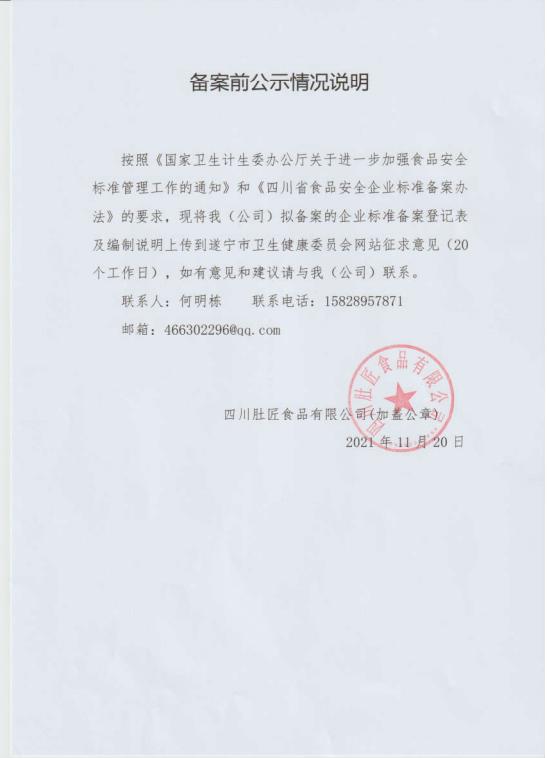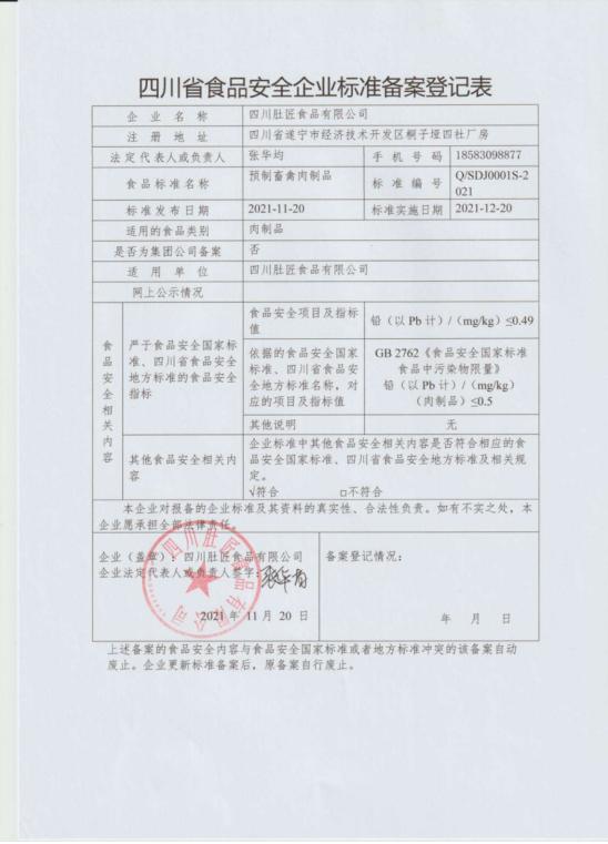 四川肚匠食品有限公司—预制畜禽肉制品(公示截止期2021年12月29日)