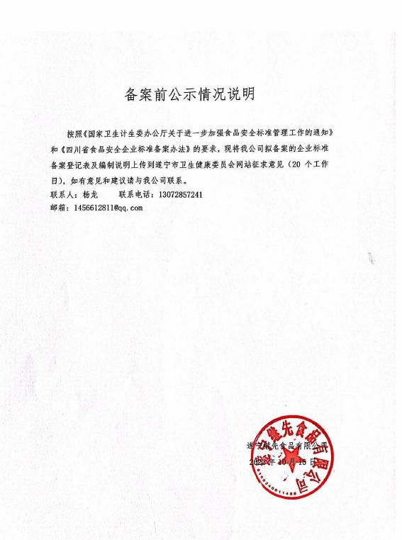 遂宁继先食品有限公司——半固体调味料(公示截止期2022年11月24日)