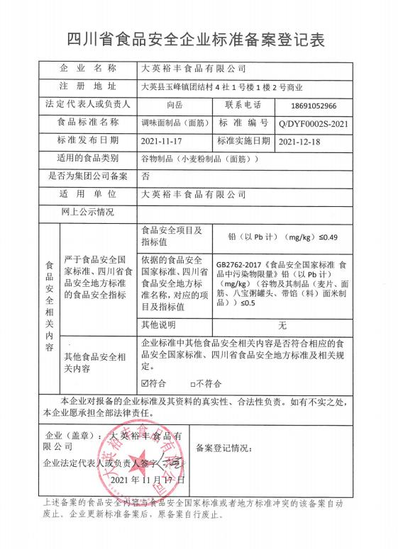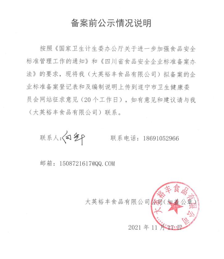 大英裕丰食品有限公司——调味面制品(面筋)(公示截止期2021年12月14日)