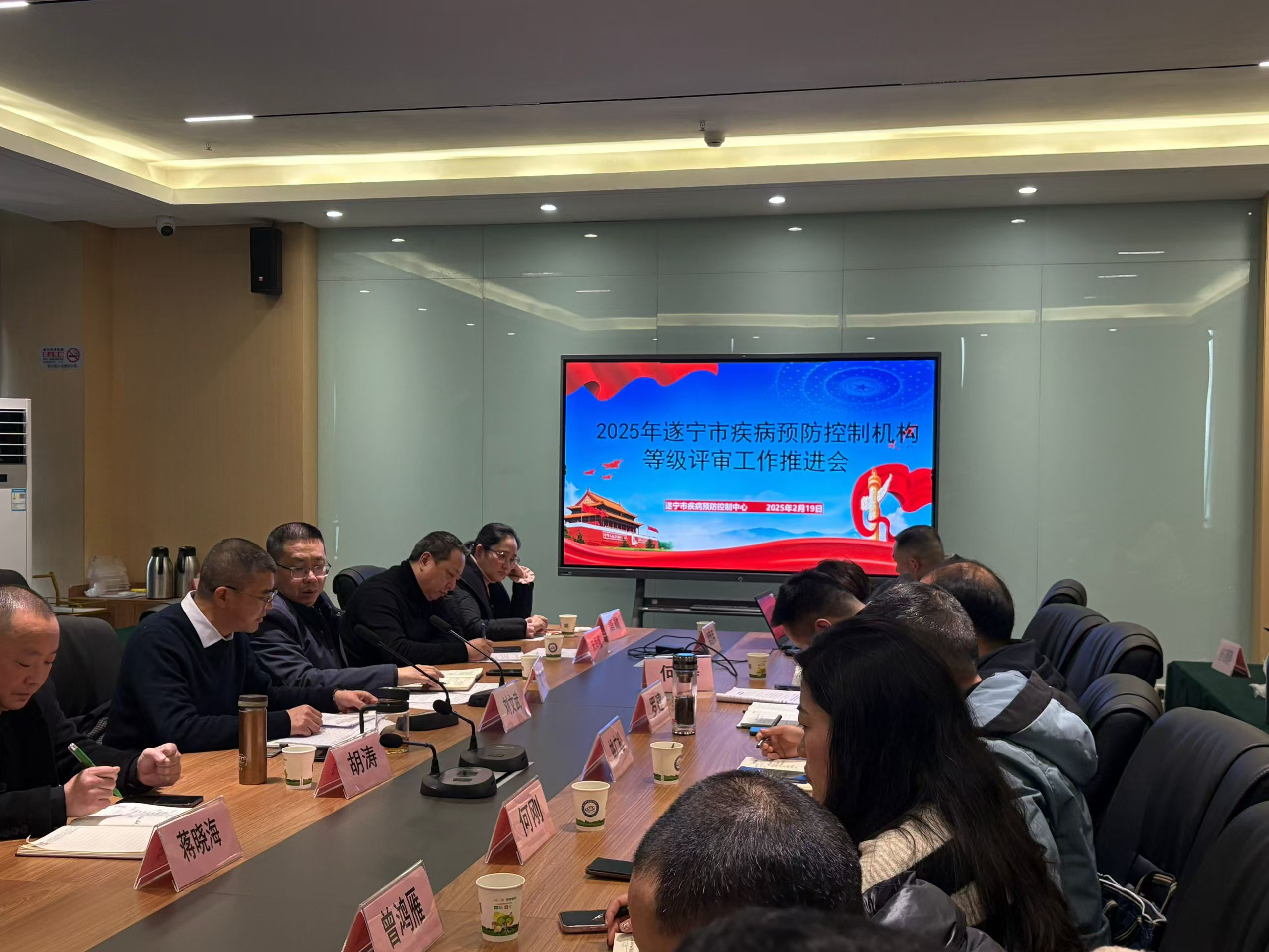 为全面贯彻落实四川省疾控机构等级评审工作,推进我市疾控事业高质量发展,按照四川省疾控局《关于组织开展2025年疾控机构等级评审工作的通知》文件的要求,遂宁市疾控中心于2025年2月19日在市疾控中心业务楼组织召开了全市疾控系统等级评审工作推进会。