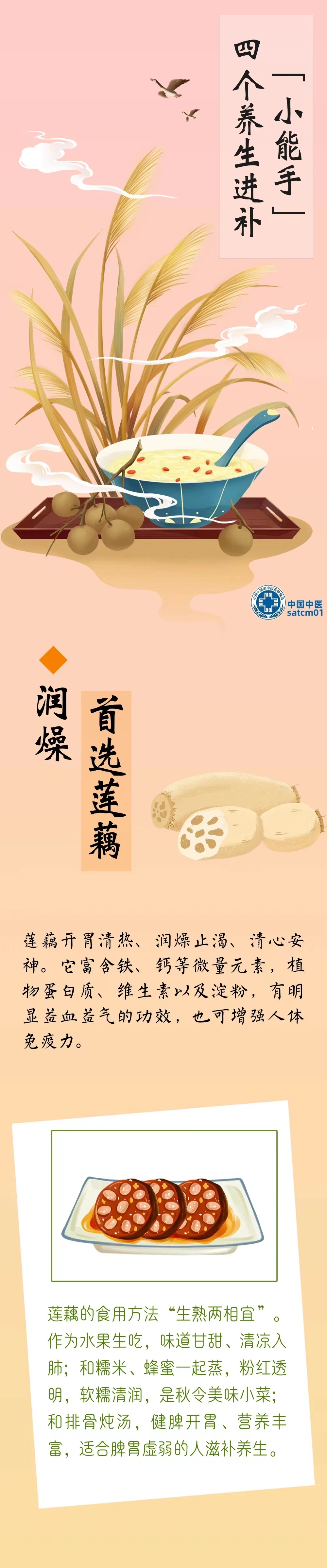 秋天到,民间素有“贴秋膘”之说,大家都开始着手进补。但怎么吃最好呢?我们的肠胃在经历了一夏的“冷饮轰炸”后,脾胃功能减弱,再加上秋季多风、干燥,稍不留神就会被感冒、发烧盯上。 此时应该多吃一些容易消化,有润燥滋补功效的食物。这份秋季养人饮食,教你“吃”出一整个秋天的健康。
