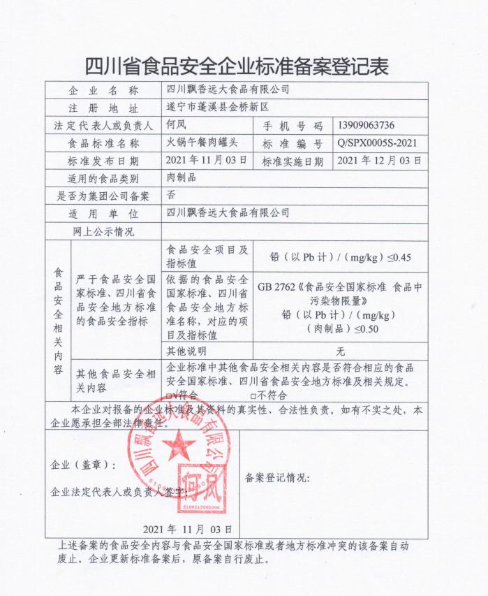 四川飘香远大食品有限公司——火锅午餐肉罐头(公示截止期2021年12月8日)