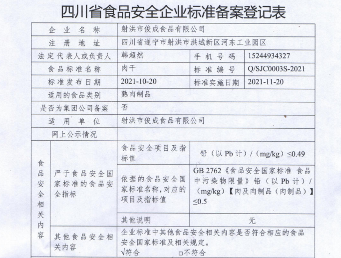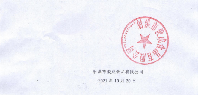 射洪市俊成食品有限公司——肉干食品备案公示(公示截止期2021.11.19)