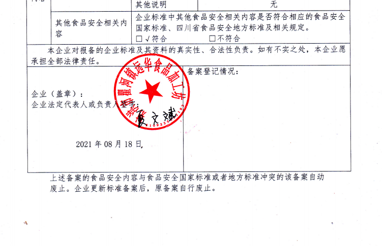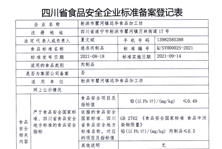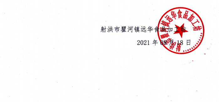 射洪市瞿河镇远华食品加工坊食品备案公示(公示截止期2021.9.15)