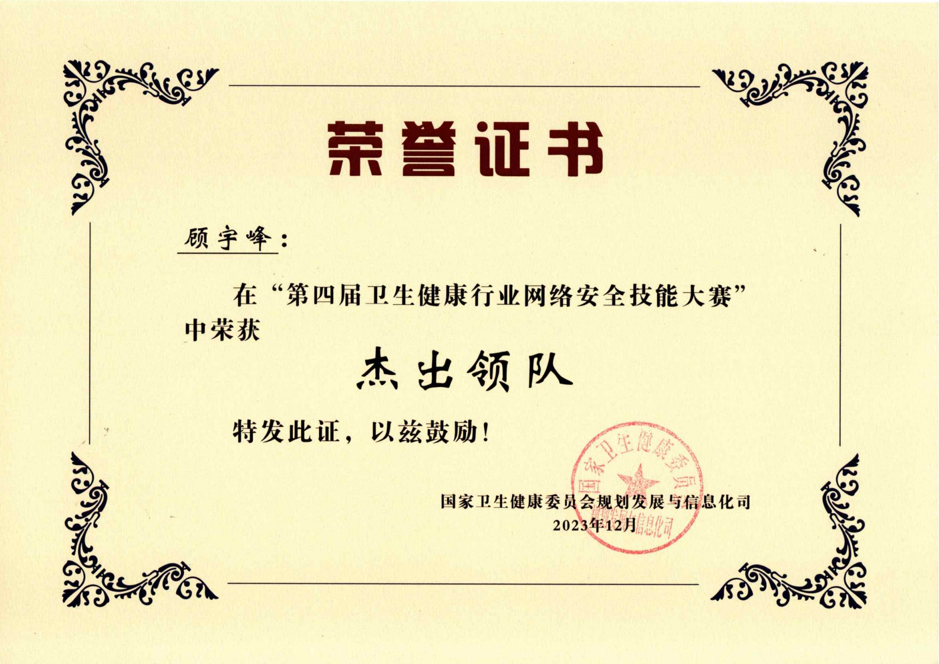 12月5日,由国家卫生健康委主办、中国医院协会承办的第四届全国卫生健康行业网络安全技能大赛在长沙收官,来自全国31个省(自治区、直辖市)和新疆生产建设兵团共计121支队伍、463名选手参加比赛。经过理论比拼和数据分析+实景防御6小时18轮次的持续测试评估,遂宁市中心医院信息中心团队(顾宇峰,唐夏,杨强,胡韬,李昊昱)获得大赛优胜奖,顾宇峰获得杰出领队奖。