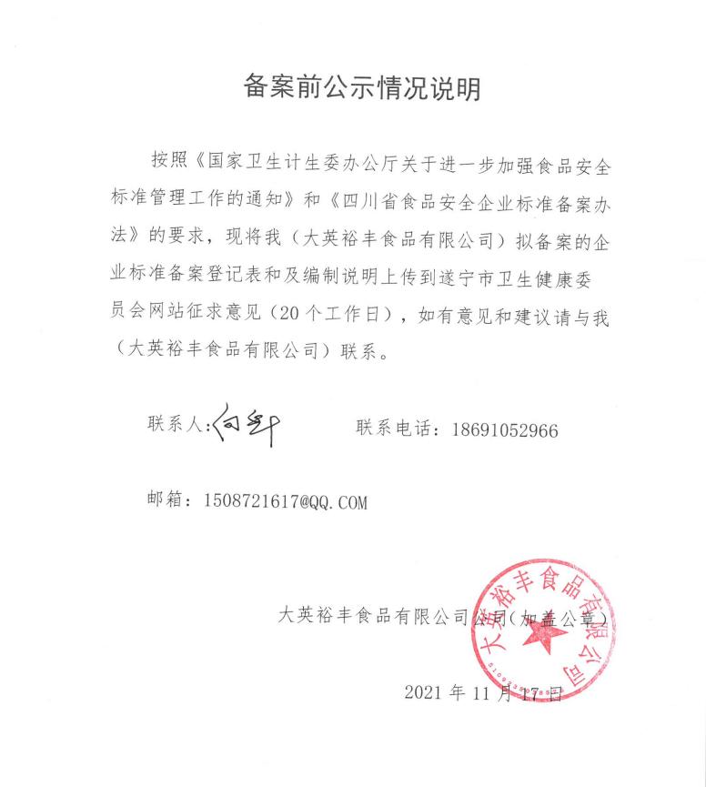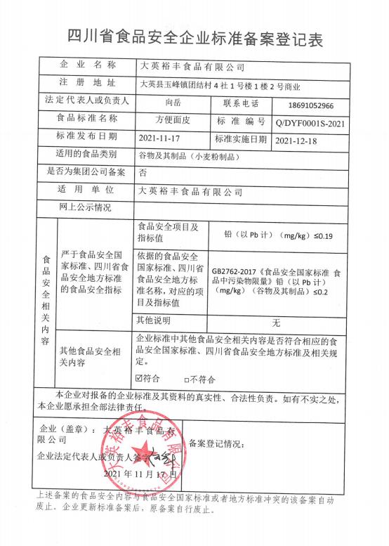 大英裕丰食品有限公司——方便面皮(公示截止期2021年12月14日)
