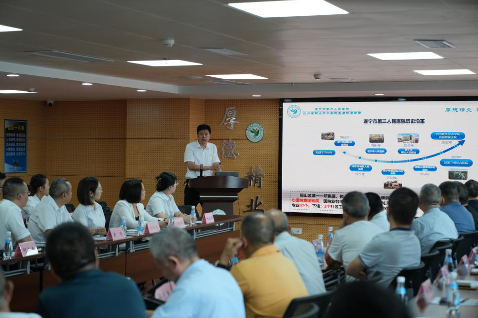 2024年9月28日,遂宁市老科协卫生健康分会在市第三人民医院举行“提升科学素质 推进科技强院”科普日调研座谈活动,市老科协卫生健康分会领导、部分老医药科技工作者代表,市第三人民医院党政领导,省、市重点专科负责同志和市卫健委党委办、船山区卫生健康局负责同志等50余人参加,市老科协荣誉理事李安成,市老科协副会长、商贸分会会长蒲成俊,市卫生健康委机关党委书记唐果出席并讲话,市老科协副会长、卫生健康分会会长孙先禹主持座谈会。