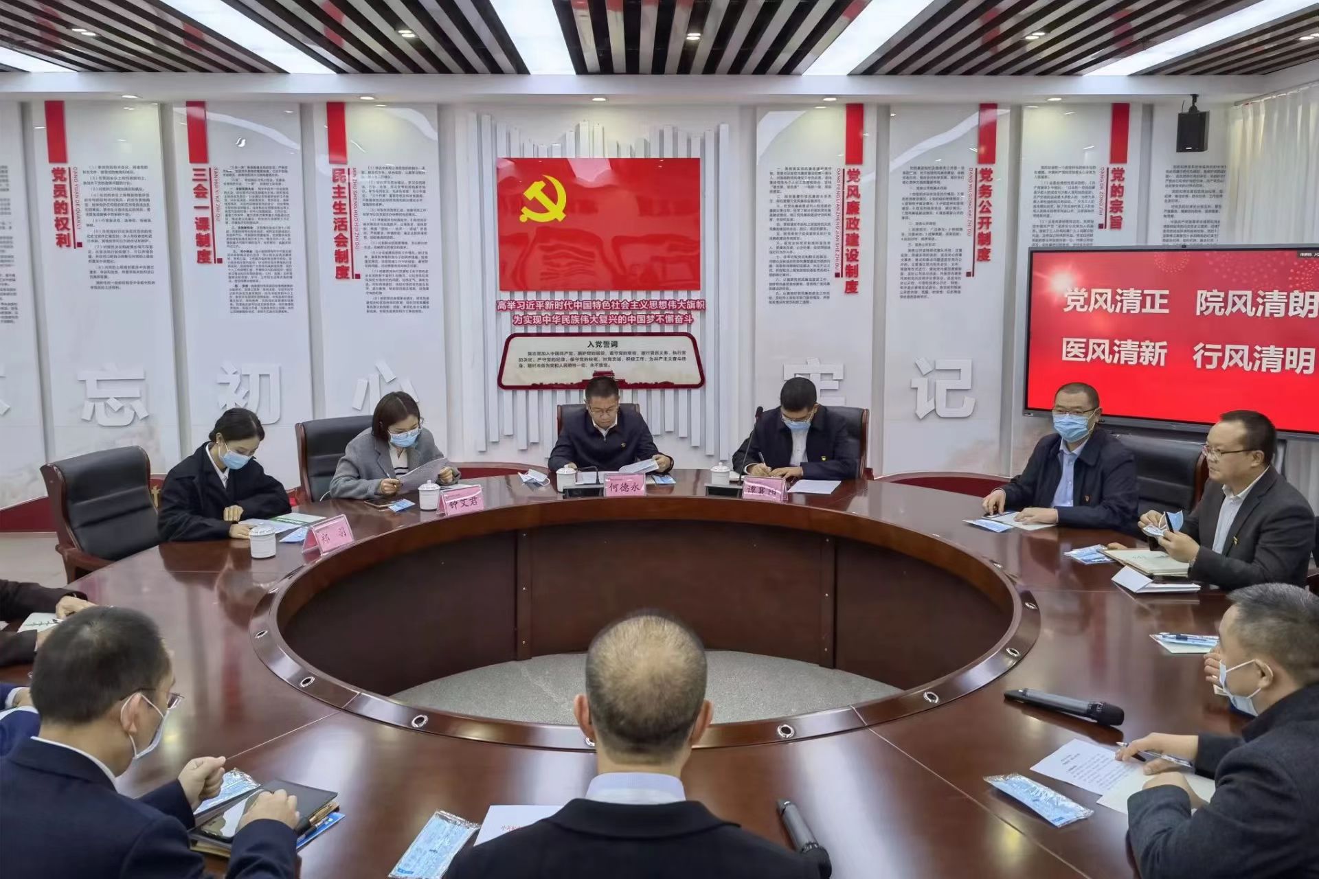 实地调研后,检查组在我院党建活动室召开座谈会。座谈会上,院党委书记杨成虎围绕“清廉医院”建设工作的主要做法和成效进行了汇报。院党委杨书记表示,我院高度重视“清廉医院”创建工作,不断加强行风建设,全面提升反腐倡廉水平,推动全面从严治党在我院向纵深发展,努力打造“党风清正、院风清朗、医风清新、行风清明”的清廉医院。