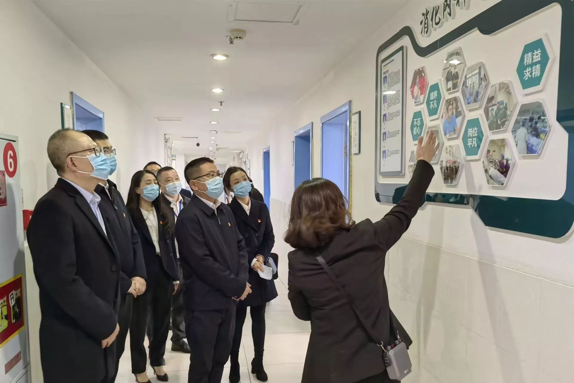 在解说员的引导下,检查组先后来到党建工作阵地、清廉文化长廊等地,详细了解“清廉医院”阵地打造、制度落实等相关情况。