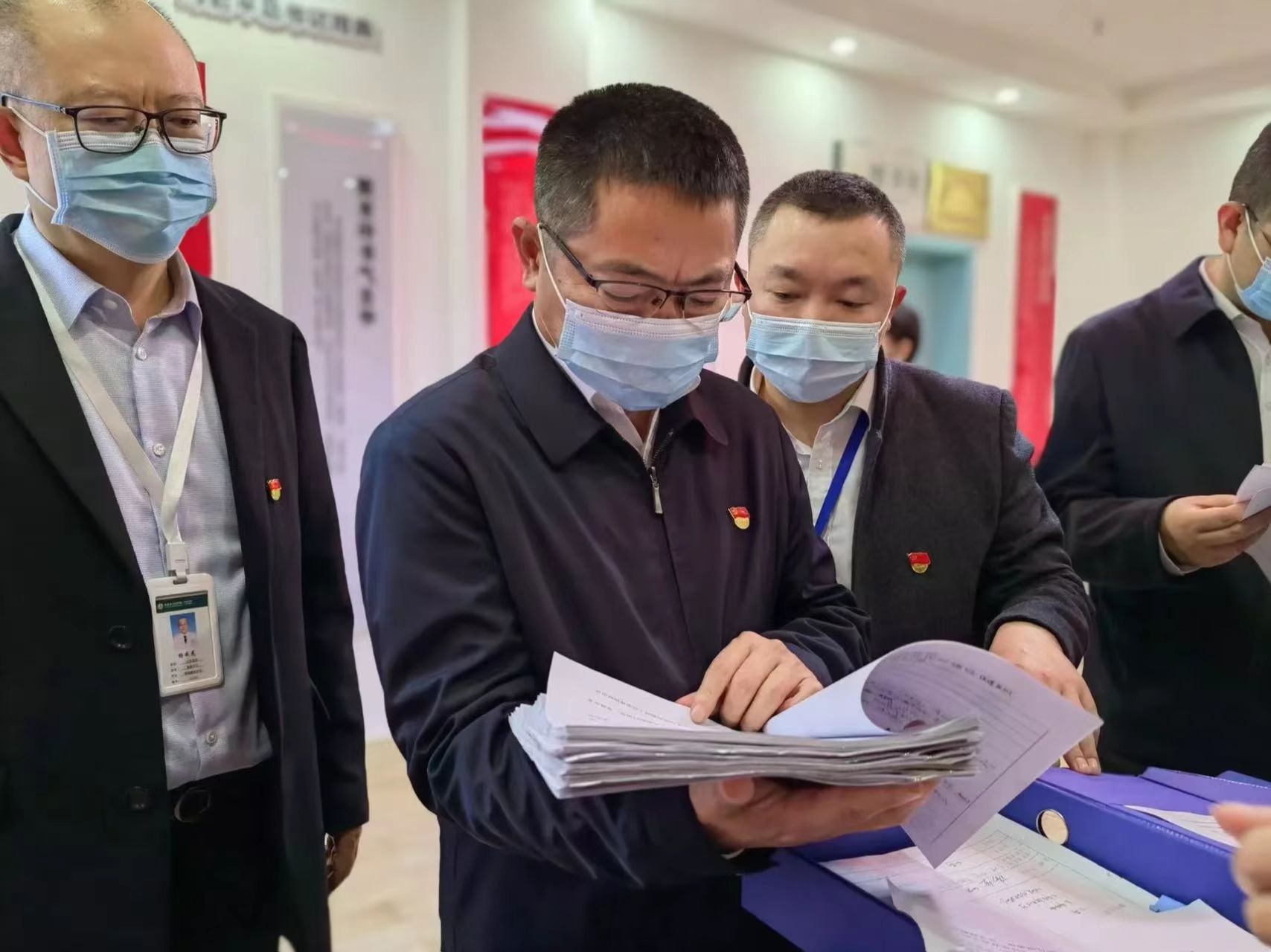 检查组对我院“清廉医院”建设档案资料进行现场查阅。