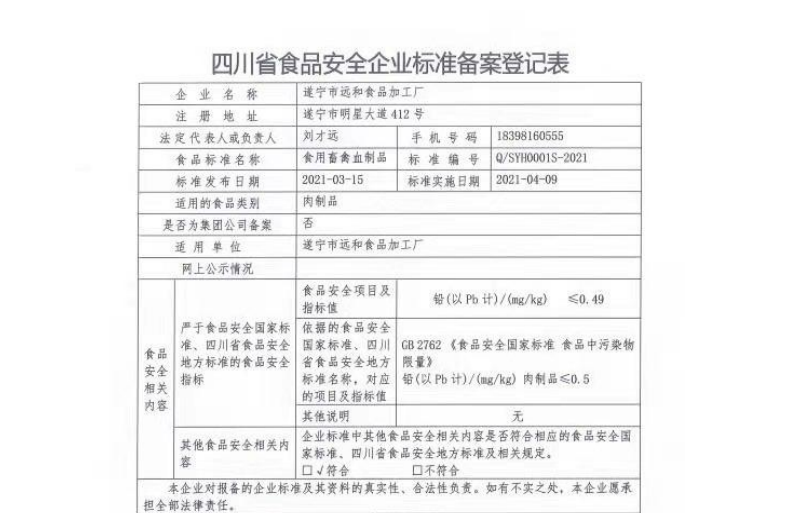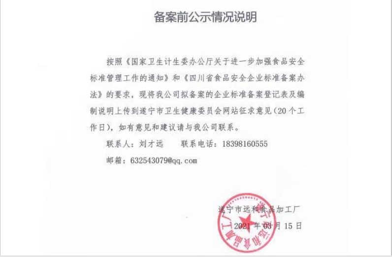遂宁市远和食品加工厂食品备案公示(公示截止期2021.04.13)
