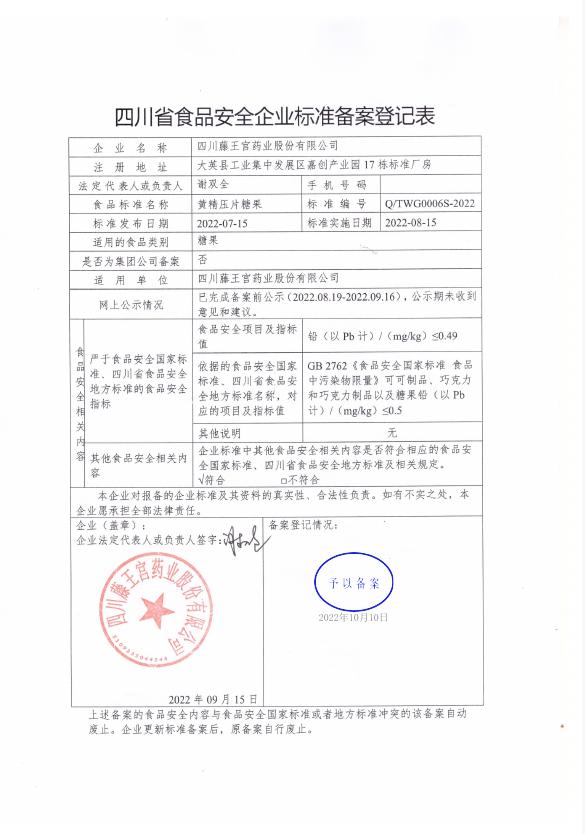 四川藤王宫药业股份有限公司——黄精压片糖果