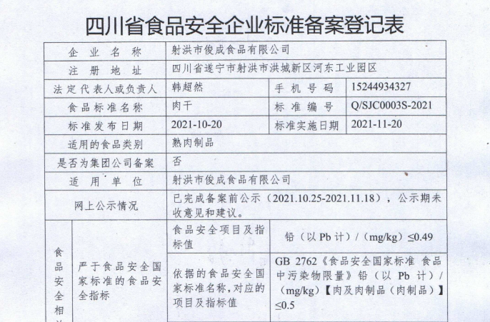 射洪市俊成食品有限公司——熟肉制品