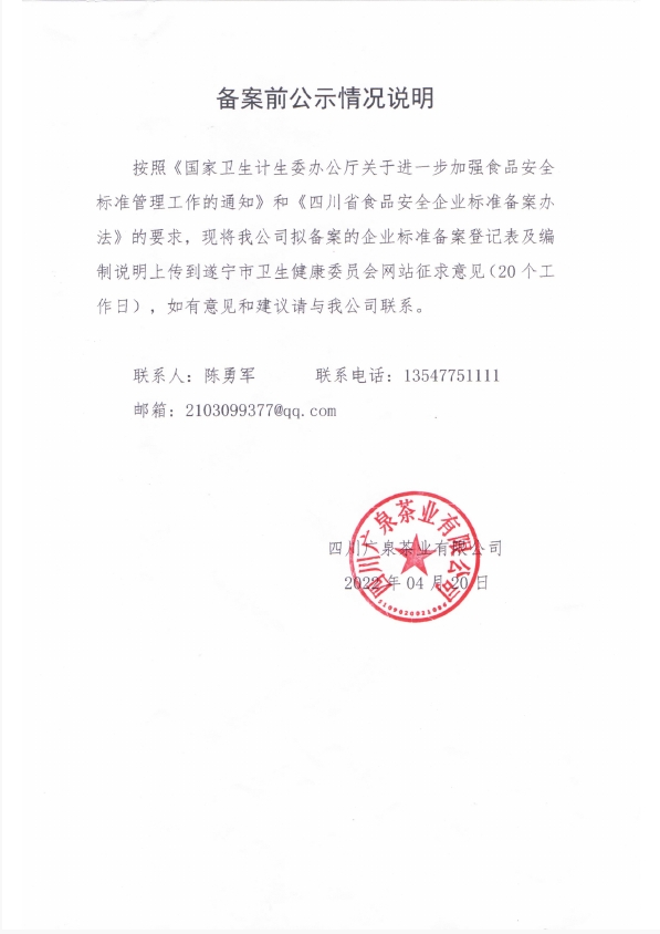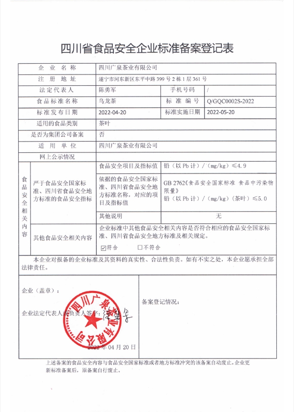 四川广泉茶业有限公司——乌龙茶(公示截止期2022年5月20日)